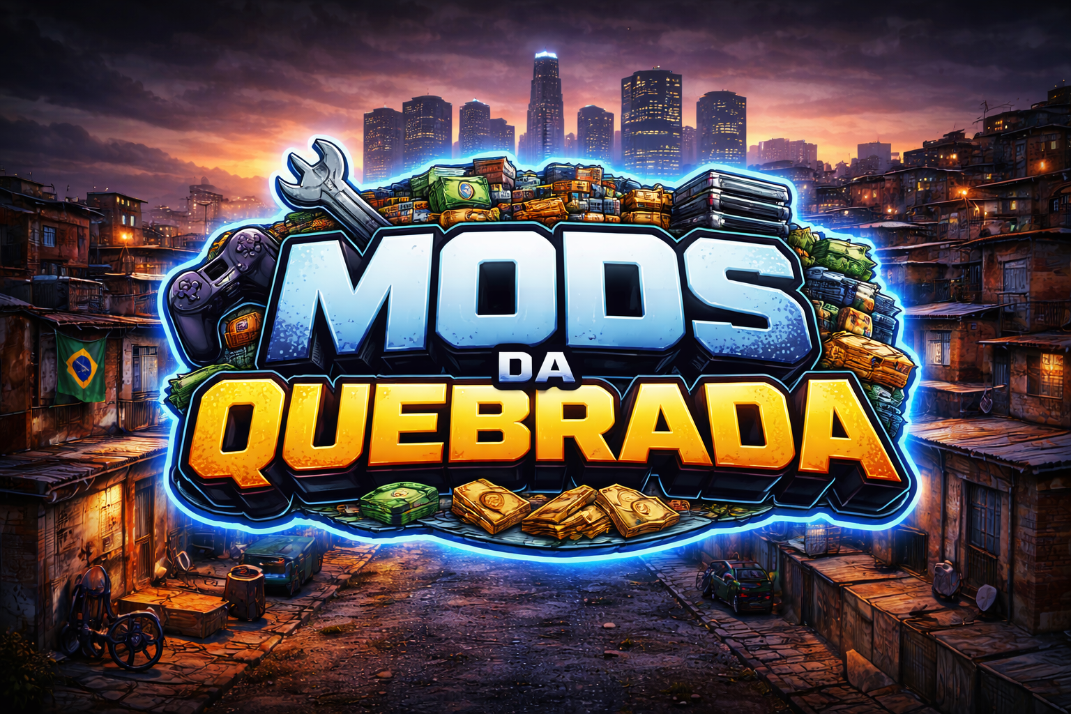 Cenários de favela detalhados, vielas e skyline urbano autêntico.